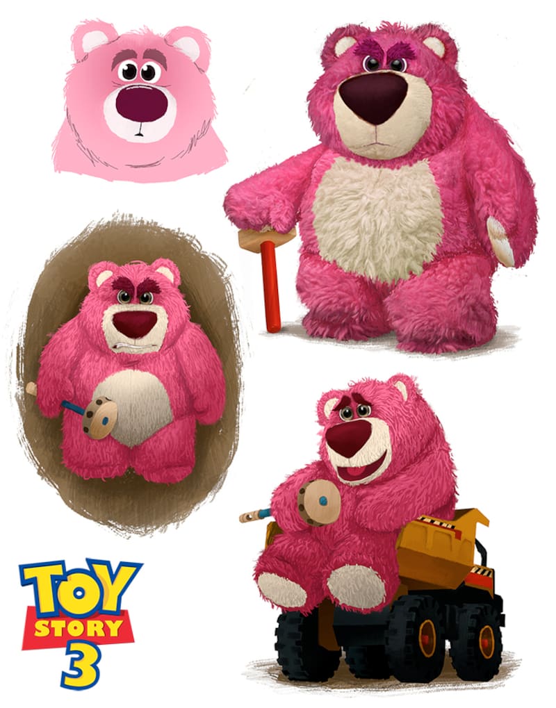 -Crecí con muchos osos de peluche, no te voy a mentir (ríe). La idea de Lotso fue escrita por los guionistas y directores, así que cuando trabajé para esa cinta, nos presentaron esta idea de un oso rosado que huele a fresas. Y no era solo yo, también estaban otros artistas, y hubo un trabajo previo, pero sí, recurrí a mis recuerdos de infancia para poner diversas características que uno recuerda con cariño. Lo más importante, era hacer un oso de peluche que no fuera como ningún otro, crear nuestro propio ‘teddy bear’. Así pasa generalmente en las cintas animadas, los guionistas presentan su idea al equipo de arte y nosotros las concretamos. Pero creo que al diseñar personajes siempre evocamos nuestras experiencias personales, porque queremos que sean auténticos. Mientras más auténticos sean, más se vincula el público con la historia.