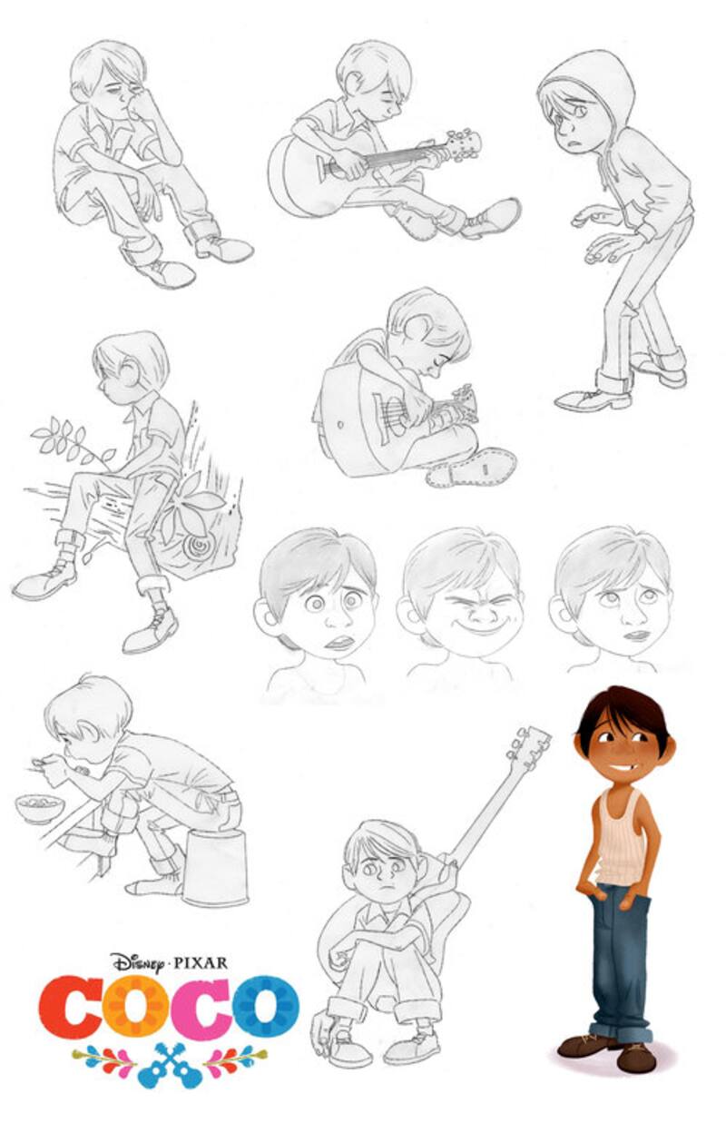-Amo a todos los personajes en los que he trabajado, pero diría que Miguel es de mis favoritos. Me podía ver reflejado en él por tener esta pasión por algo que tu familia realmente no cree que puedas hacer para ganarte la vida: el arte. A mí siempre me inculcaron: “Obtén un oficio y trabaja duro. Y luego ve a casa, se un buen padre y se una buena persona”. Miguel apareció en un momento especial de mi vida. Yo tengo tres hijos -dos hijas y un hijo-, y en ese entonces, mi hijo tenía unos 7 años. Miguel tenía unos 11, y por las proporciones de mi hijo en ese tiempo, su cabeza era más grande en proporción a su cuerpo, y realmente funcionó. También me inspiré en mi hijo en cuanto a tono de piel, texturas, el pelo, la forma en que le queda la ropa... cosas así. Copiaba aspectos como lunares en su rostro, no para que se pareciera a mi hijo, sino para que se viera como una persona auténtica. Yo soy mexicano nacido en Estados Unidos, pero toda mi familia es mexicana. Fue muy divertido y emocionante trabajar en Coco.