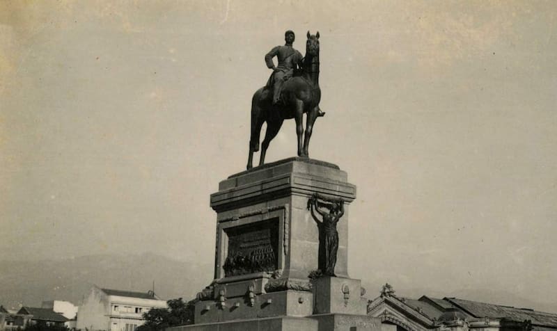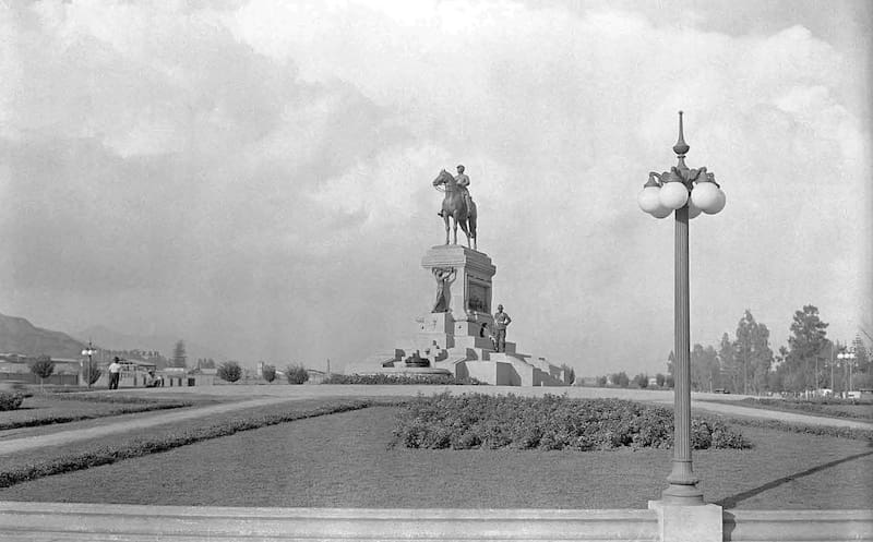 El pasado fin de semana, el monumento en bronce al general Manuel Baquedano cambió cuatro veces de color, en medio del masivo aniversario del 18-O. Su historia se remonta hace casi un siglo. Para septiembre de 1928, la escultura fue instalada en la entonces Plaza Italia de Santiago, como parte de un conjunto de relieves y volúmenes que narran hazañas de la Guerra del Pacífico.