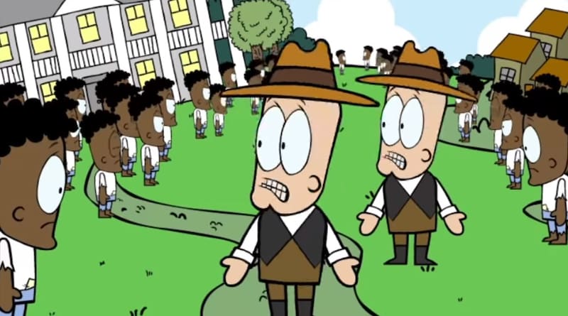 A los peregrinos, “cuando llegaron a tierra, los recibieron los salvajes, y se volvieron a asustar”, relata Moore en el documental. “Y los mataron a todos”. La apropiación de tierras, la explotación de sus recursos naturales y las enfermedades mortales importadas de Europa —a las que no eran inmunes— fueron factores que minaron la subsistencia de la población nativa.