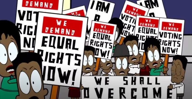 “Por aquel entonces los blancos también tenían miedo a trabajar”, dice sarcásticamente el narrador del corto animado de Moore.