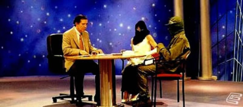 Julio Videla vestía traje y corbata como era habitual en su programa Juntémonos, y en la mesa frente a él había dos individuos enmascarados: un hombre y una mujer que decían ser de otro planeta.