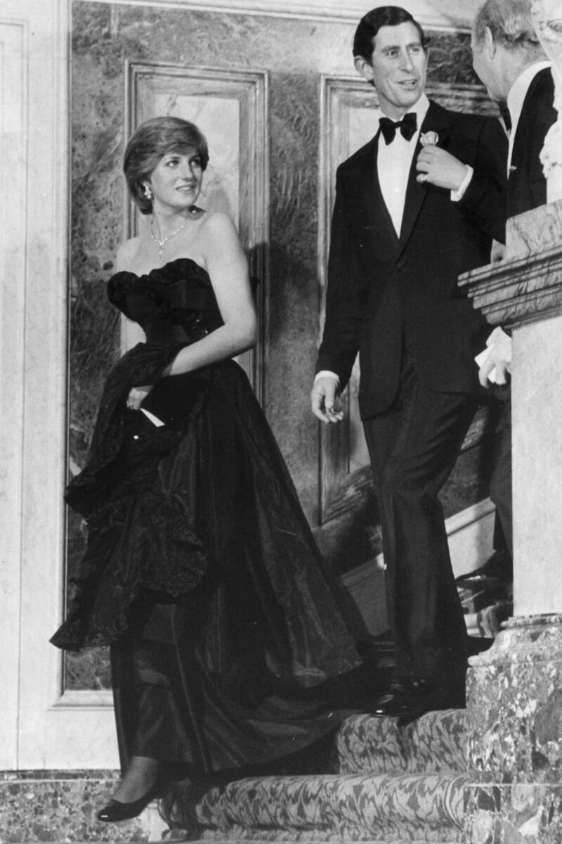 9 de marzo de 1981: En la primera salida oficial posterior al compromiso, Diana “rompe la etiqueta” de la realeza al usar un vestido negro -diseñado por Elizabeth Emanuel- considerado “demasiado escotado”. Al día siguiente, los medio sensacionalistas la critican por su aspecto al afirmar que “tiene kilos de más”.