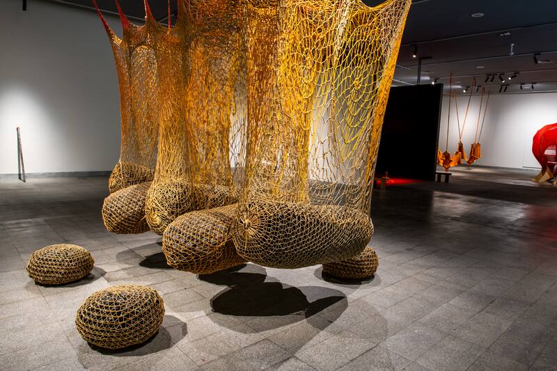Su trabajo es de impacto masivo: sus esculturas de gran formato son habitables y lúdicas. Muchas veces son laberintos translúcidos que sólo se pueden recorrer contorneándose, o seductoras instalaciones colgantes tejidas a crochet o de lycra, que exudan aromas de azafrán o clavo de olor. Cada obra espera ser tocada, olida y escuchada,