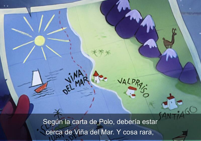 Una mención más bien decepcionante de Chile considerando la cita de Walt Disney en el Hotel Carrera en Santiago el año 1941. Fue una de sus varias paradas en Latinoamérica, en busca de inspiración para sus siguientes cintas animadas: Saludos Amigos (1942) y Los Tres Caballeros (1944).