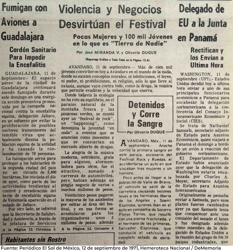 El 11 de septiembre de 1971, una multitud de 300.000 jóvenes se aglomeraba en Avándaro, un asentamiento rural ubicado a 5 kilómetros del pueblo Valle de Bravo en el Estado de México. Muchos de ellos paseaban sin polera, mientras que otros vestían ponchos, pantalones holgados y levantaban banderas de su país con el símbolo de la paz dibujado en su parte central.