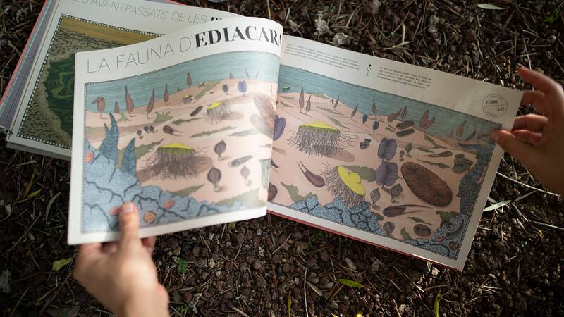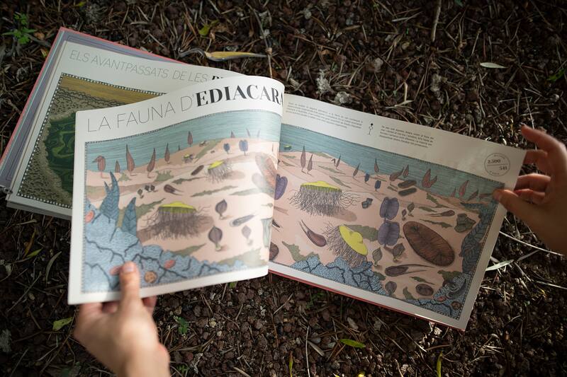 —Con este libro aprendí a dibujar. También aprendí a conocer la estructura del paisaje. Nunca había trabajado la ilustración a nivel científico. Debía tener una gran precisión. Por otro lado, conocí la historia del planeta, que yo no tenía ni idea, lo máximo que conocía de un dinosaurio fue por Jurassic Park. Y también me di cuenta que los dinosaurios solo son una anécdota en toda la línea temporal. La reflexión final que hago es que nosotros no tenemos noción de qué son 4 mil millones de años atrás; mentalmente no nos da. Poniéndome un poco moralista: aquí ha pasado mucha cosa, somos medio minuto en la línea temporal, y esto te da una perspectiva de respeto.
