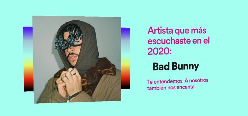 El artista más escuchado fue Bad Bunny, puertorriqueño que este año lanzó tres discos: YHLQMDLG, Las que no iban a salir y El último tour del mundo. Dado que el primero fue lanzado el 29 de febrero, fue esta producción la que adquirió mayor popularidad, con temas como “Safaera” y “Yo perreo sola”.