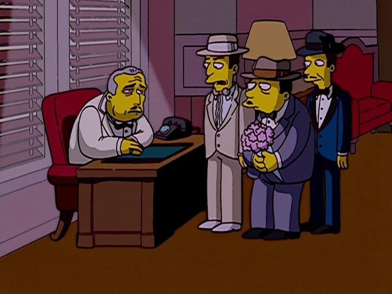 Sin embargo, una de las producciones cinematográficas a la que más guiños se le hace es a la saga de El padrino. Dentro de todos los capítulos hay alrededor de treinta momentos que evocan a los tres filmes protagonizados por la familia Corleone. Culto hizo una selección con algunas de las referencias más extensas, emblemáticas y divertidas que se hacen a lo largo de la serie animada.