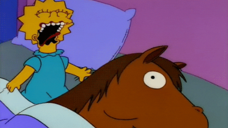 Al igual que en El Padrino, Lisa se entera del obsequio al despertar, cuando ve la cabeza del caballo entre las sábanas, solo que en este caso el animal está con los ojos abiertos, y vivo. Aun así, la niña se aterra al encontrarse a un enorme equino en su pieza y grita con fuerza, al igual que Woltz.