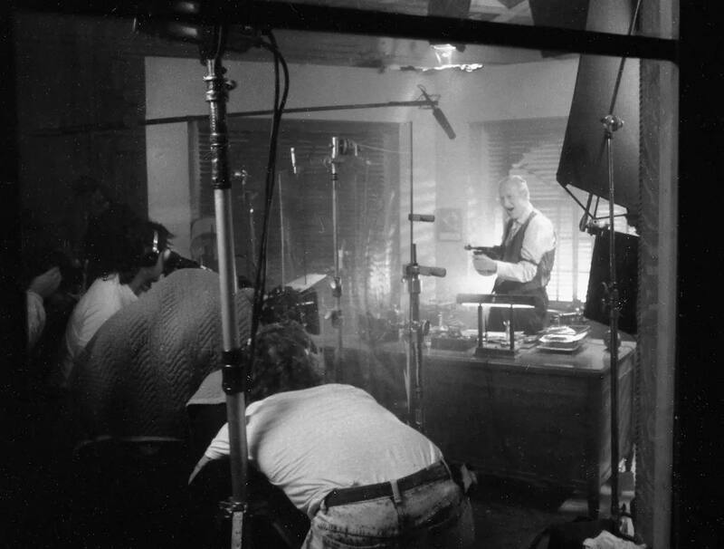 La secuencia se rodó en un sector del gimnasio abandonado de New Trier West High School, y todo el conjunto para la escena constaba de solo un par de paredes. La oficina de Johnny fue diseñada con vidrio translúcido con textura en la puerta y una ventana que lo iluminaría siniestramente en su escritorio a través de persianas venecianas. Un diseño especialmente creado para el máximo drama.