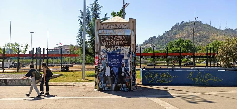 Antes de partir a Irlanda, él vivía a solo unas cuadras de la Plaza Baquedano y estuvo en el sector en su visita para el plebiscito. “Me pasó algo bonito ahí”, dice. Se encontró con ese GIF convertido en un afiche a tamaño real que estaba pegado en una pared del sector, “en medio de la destrucción para crear un Chile más lindo”.