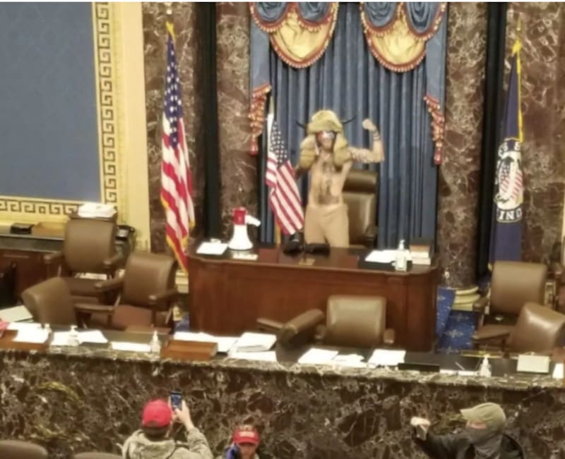 Fue una de las imágenes del día. Más de alguno reparó en el joven que por unos segundos se ubicó en la cabecera del Senado en la capital misma de EE.UU. Un hombre barbado, que a torso desnudo vestía un llamativo sombrero de cuernos y lucía pintura facial en el rostro. Algo así como un guerrero místico que se hizo notar entre los seguidores de Trump que, como los vándalos en Roma, asaltaron el capitolio y forzaron la suspensión de la ceremonia en que se ratificaría la victoria electoral de Joe Biden, la que finalmente se reanudó horas más tarde.