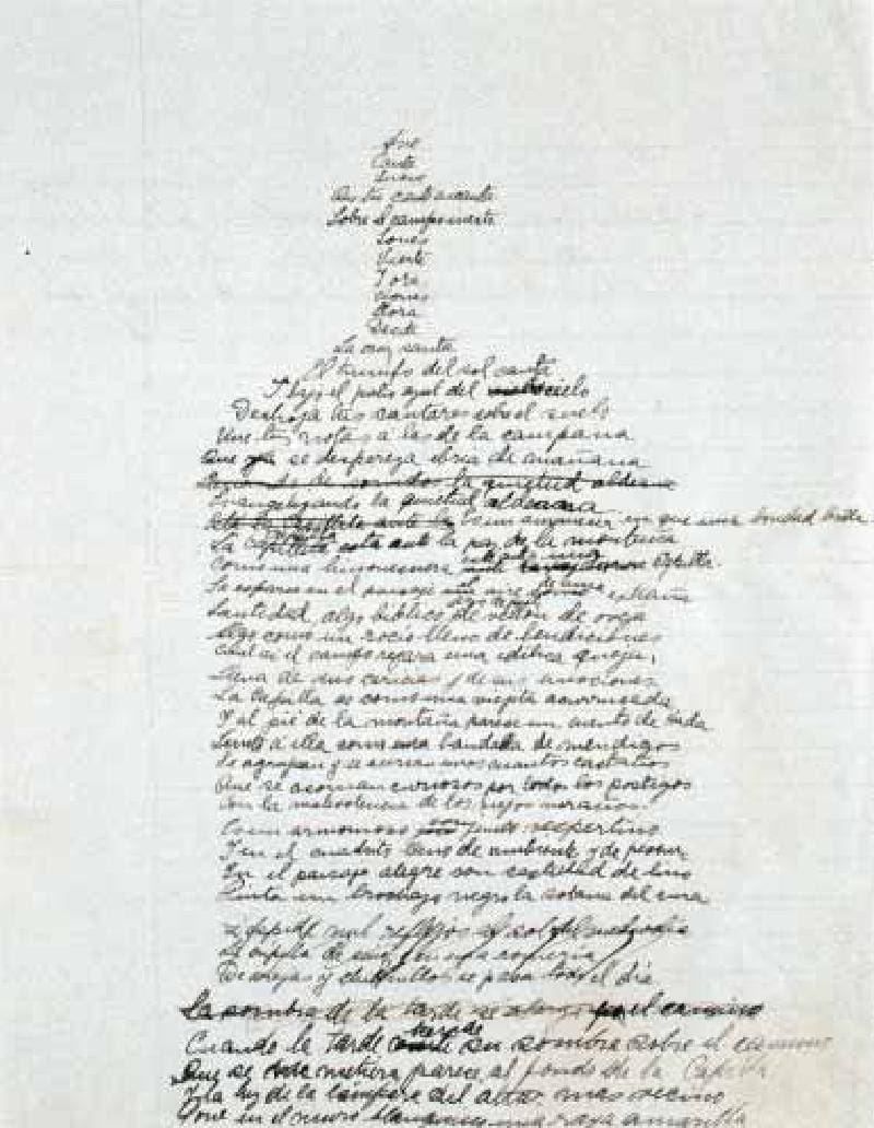 “Los caligramas y la poesía visual forman parte de una tradición muy antigua (hay numerosos ejemplos en la poesía griega y latina, por ejemplo), y dentro de la poesía española e hispanoamericana hay muchos casos, especialmente en el barroco pero también en el siglo XIX. Una fuente muy completa para observar esta tradición es la antología Pattern Poetry, de Dick Higgins”.