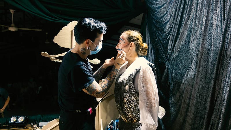 La producción a cargo de Equeco (la compañía local que debutó en 2017 con La mentirita blanca) también semejó un ejercicio de resistencia, con un equipo reducido en el set y tiempos más extensos para terminar las grabaciones. Semanas en que, reconoce el director, “siempre estábamos con la incertidumbre de si la película se cancelaba o no”, producto de los cambios en las restricciones sanitarias en el país.