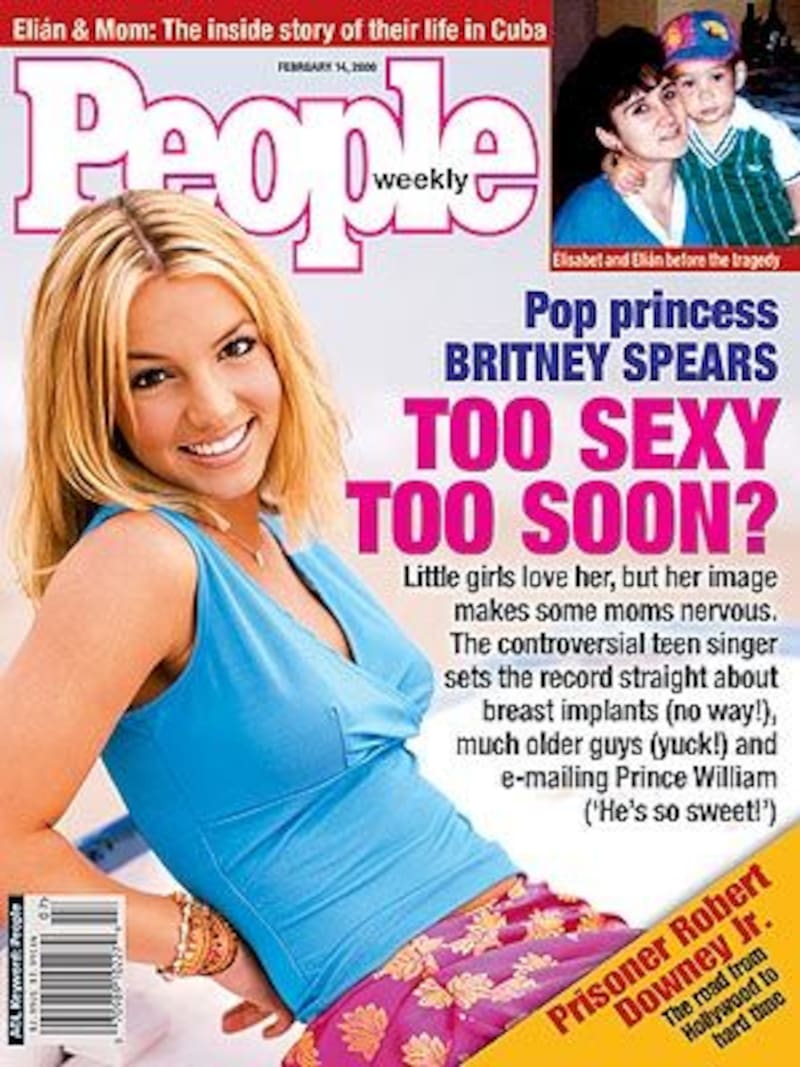 Conocida es la portada de la revista People de febrero del 2000 que la muestra a sus 19 años, ante el titular “Too sexy, Too soon?”, un cuestionamiento a la artista que pretendían mantener como “dulce, inocente y virginal”, que poco a poco se convertía en una “sexy vamp en ropa interior”, como dijo un reportero de la farándula de la época.