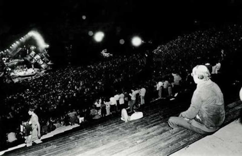Raffaella Carrá era una consagrada con casi 30 años de carrera profesional cuando desembarcó en la Quinta Vergara en 1982 junto a sus chicos, un cuerpo de baile más bien excéntrico con sus ajustadas mallas, antes que coordinado. A los 50 minutos de show Antonio Vodanovic le entrega la antorcha. Entre las tomas al entusiasta público en la platea, aparece imperturbable Jaime Guzmán. El ideólogo del régimen era aficionado al festival. Hay una fotografía suya de 1985 sentado en solitario casi al final de la galería.