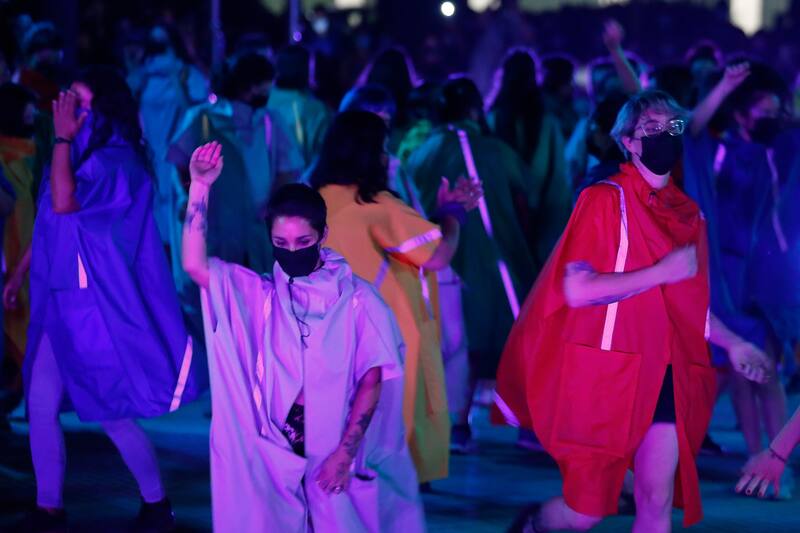 Otra obra que debió adaptarse fue Resistencia, del colectivo Lastesis. En rigor, estaba programada para ser exhibida en el ciclo de enero, en el GAM. Sin embargo, al quedar la comuna de Santiago en Fase 2, los planes debieron cambiar. Recién se pudo realizar una función el pasado domingo 7 de marzo en la Plaza mayor de Renca.