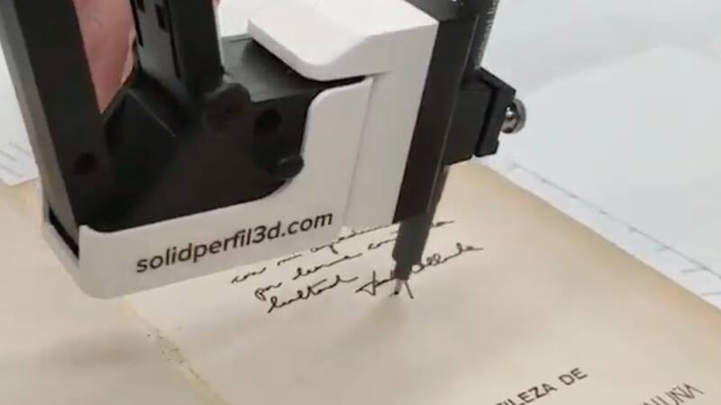 Se trata de un brazo robótico, proporcionado por la firma Abacus cooperativa, que permite a los autores firmar sus libros desde la comodidad de sus hogares.