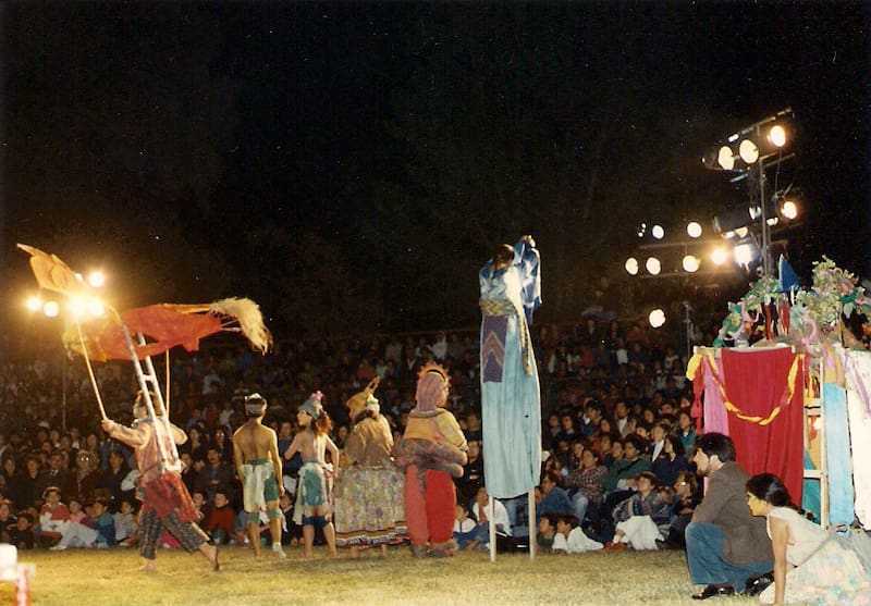 “Para Andrés y para nosotros lo importante era hacer teatro, no importaba dónde fuera, pero, claro, no teníamos la vocación del teatro burgués con butacas de felpa; nos gustaba más lo masivo. El teatro callejero despierta en el público y en los actores algo que es muy tribal, en el fondo es una comunidad que disfruta su propia cultura”, dice Videla.