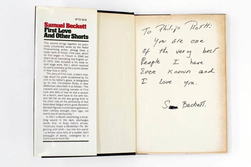 En los libros, donde hay dedicatorias de sus autores (como de Samuel Beckett, por ejemplo), se pueden encontrar anotaciones y marcas que Roth hacía mientras leía.