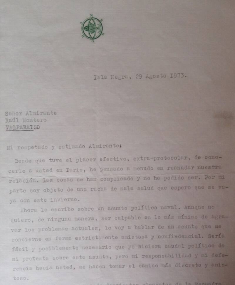Pero Neruda no solo le escribió a Montero, también lo hizo al general Carlos Prats. Ocurre que días antes, el 23 de agosto, el militar había renunciado a su puesto de comandante en jefe del Ejército. Hombre constitucionalista, simplemente había sido “agobiado por las presiones de aquellos que querían ver a los militares comprometidos en una acción que pusiera fin al gobierno de Allende”, como se indica en Historia del siglo XX chileno.