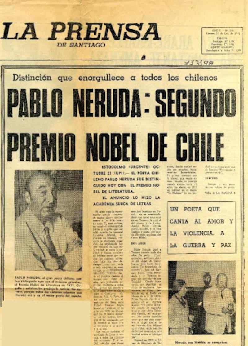 El telegrama desde la Embajada chilena en Suecia llegó urgente a Santiago. Era el 20 de octubre de 1971 y pese a lo cortado que suele ser la redacción de su mensaje, traía una de esas esas noticias que son para enmarcar. “Informaciones confidenciales sostenidas Embajada indican que Premio Nobel sería concedido mañana Neruda. Ruego a US. máxima reserva vista información no está confirmada”.