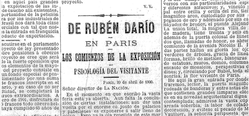 Tras un breve repaso del currículum de Darío, el artículo cierra con la frase “deseamos al señor Darío grata permanencia en este país, del cual dice hallarse encantado”.