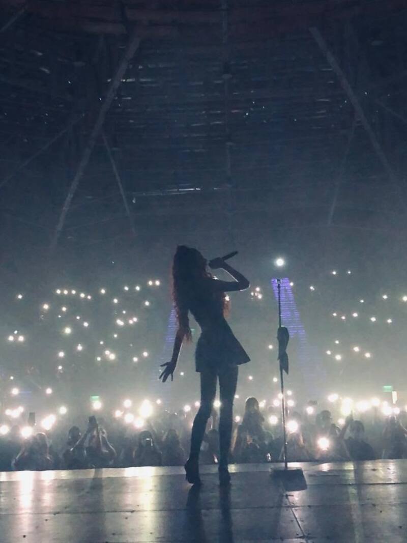 Ahora la solista está de vuelta en la música en plena forma, con una gira y un nuevo disco. Luego de ensayar un par de canciones se detiene a tomar agua y se sienta en uno de los desniveles del escenario. Su pelo rojo cereza está recogido con un cintillo y viste un buzo cómodo para el ensayo. Actualmente prepara su primera presentación en un Lollapalooza, en marzo, donde compartirá público con Miley Cyrus, A$ap Rocky y Javiera Mena. Admite estar emocionada ya que es fan de la ex chica Disney y el montaje del show forma parte de su gira más grande hasta ahora, Camino al Caos, que partió el 21 de enero en Constitución y hoy sigue en Monticello.