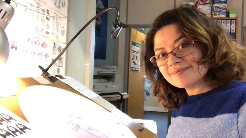 “Los bosquejos los hace James Nutting, la animación principal está a cargo de Joanna y luego me los pasa a mí para que yo termine los dibujos que van entre medio. Es una cadena de trabajo bien riguroso y todo esto dibujado en papel”, detalla la diseñadora.
