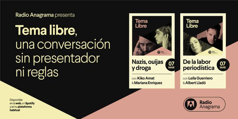 Desde hoy, y cada dos semanas, autoras y autores de la casa catalana están hablando de temas varios en la llamada Radio Anagrama, que se estrena con el podcast Tema libre. Este lunes 7 de marzo se estrenaron los primeros dos episodios. Se puede escuchar en Spotify y en la web de la editorial.