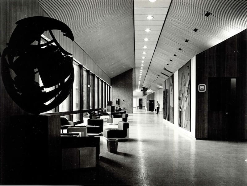 Pero no todo sería construir. Era necesario que el edificio también tuviese una curatoría de arte a la altura de las circunstancias. Quien asumió la tarea fue el pintor Eduardo Martínez Bonati. El artista había sido convocado por los arquitectos para integrarse al equipo y ayudar a solucionar problemas, “pero eso no era lo mío”, cuenta al teléfono. Así que pícaro, y aprovechando que sus compañeros estaban fascinados con una exposición del estadounidense Alexander Calder, propuso integrar arte nacional al edificio.