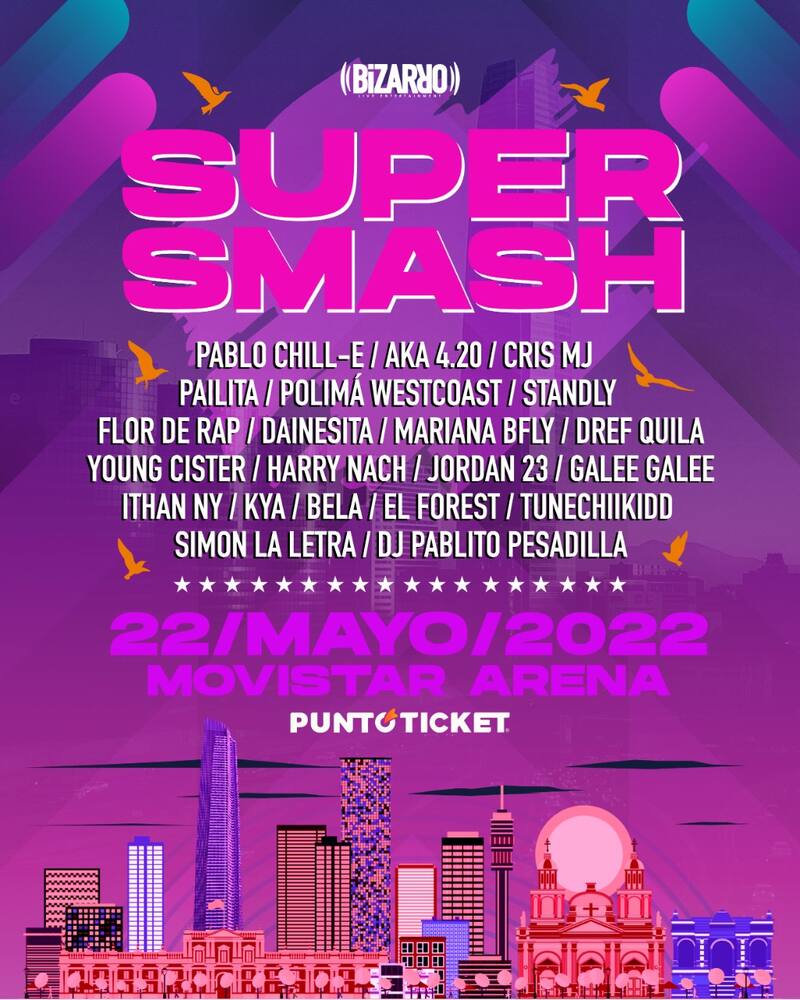 El trap ha ido ganando terreno en las preferencias musicales del público, con millones de escuchas en las diferentes plataformas musicales; Super Smash, El Festival del Trap Chileno, emerge como un evento que reunirá en el Movistar Arena a los artistas nacionales que se han abierto camino en la industria.