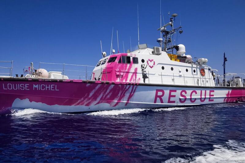 Un tema que ha cruzado el trabajo de Banksy, que además, es una problemática en la Europa de hoy, es la inmigración. Y no solo se queda en intenciones, pues ha demostrado ser un activista en la materia. En 2020 financió (y decoró) de su bolsillo un barco, llamado Louise Michel, que se paseó por el Mar Mediterráneo ayudando a inmigrantes a llegar a Europa, ante la dramática situación que viven muchque simplemente se arrojan a las aguas tratando de alcanzar un puerto. Al mando estuvo una activista alemana, Pía Klemp.