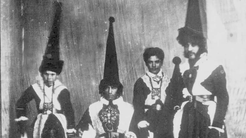 Milton Godoy agrega que “unas décadas después, hacia mediados de siglo, el marino norteamericano James Gilliss los describió (a los Cucuruchos) como una ‘mascarada solemne’ que se desplazaba por las calles vestidos de negro, con un largo sombrero cónico y un bastón, traje que les destacaba e inspiraba un ‘bien calculado terror’ entre los niños”.