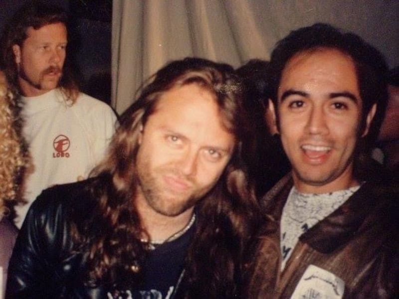Pero, la fortuna le sonrió. “Marcelo Aldunate, que era el director de la radio, se sacó su sticker y me lo pegó a mí. ‘Tú te lo mereces más que yo’, me dijo”. Así consiguió entrar al encuentro con sus ídolos y pudo fotografiarse con ellos. “Al primero que agarré para una foto fue a James Hetfield, porque es como medio para adentro. Jason Newsted se asomó, pero como se había pelado no lo reconocieron. Me saqué foto con Kirk y después agarré a Lars y en un inglés medio champurreado le dije que yo los seguía desde que estaba en el colegio y le pregunté si iban a tocar Stone Cold Crazy, su versión para el tema de Queen. Entonces Lars me dice que cambiaban el set en todas las presentaciones y en este show no estaba, pero si el público se lo gana podrían tocarlo…”.