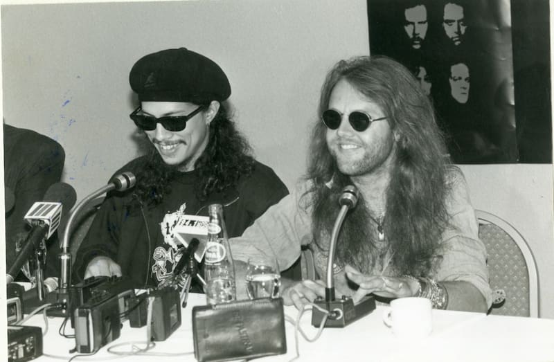 A la misma hora, Alfredo Lewin, por entonces en el espacio televisivo Tritón Music, pudo conversar en un salón del Hotel con el bajista Jason Newsted, quien se había integrado a la banda en 1986 tras la muerte de Cliff Burton. “Él era mi gran ídolo porque yo tocaba bajo en una banda de metal, entonces entrevistarlo fue impresionante. Se había rapado, para nosotros era impresionante verlo en esa cuestión tan punk. Recuerdo que, como inexperto y más como fan, lo jodí mucho con qué se sentía ser el nuevo en Metallica. Pero él, con una paciencia, y por lo tonto de la pregunta, debe haber sentido ese trauma que lo peseguía, y yo dale que dale. Me habló de Cliff Burton, el bajista original, y como se sentía privilegiado por la oportunidad ¡Y también le pregunto por el pelo! como si haberse rapado fuese algo malo”.
