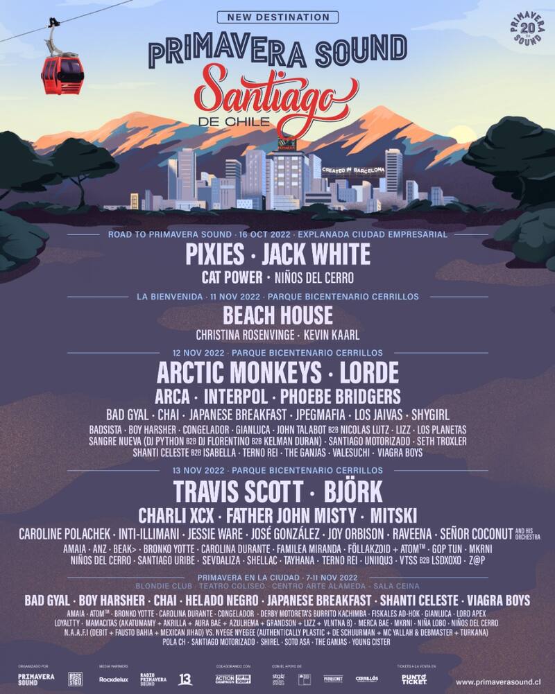 Primavera Sound Santiago anuncia su line up debut con Arctic Monkeys, Björk, Jack White, Pixies, Lorde y Travis Scott