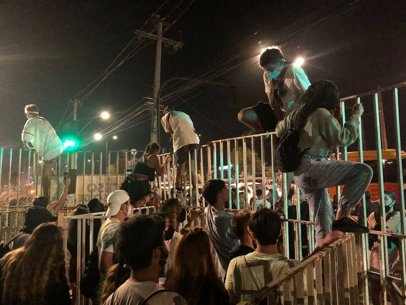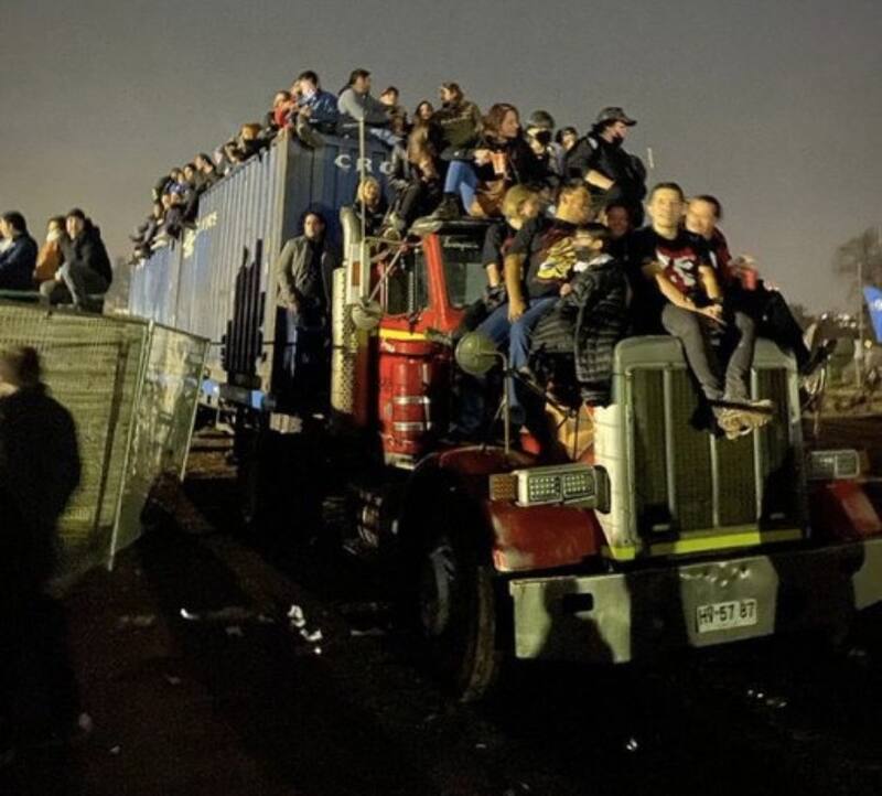 No fue lo único. Numerosos testimonios dieron cuenta de las dificultades para ingresar al recinto, resumidas en una larga espera y un ingreso caótico que pudo volverse riesgoso para los presentes, muchos de los cuales asistieron incluso con niños a ver el concierto. Al salir, el panorama fue similar. Y en el interior, no sólo había espectadores arriba de un camión, sino que también de rejas, baños químicos y basureros.