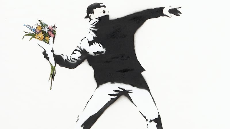 Lo suyo es dejar graffittis en la calle, que se han hecho virales haciendo que su nombre tenga un alcance global. Así por ejemplo, los policías hombres besándose o un chimpancé triste con un cartel que dice: “Ríete ahora, pero un día estaremos a cargo”.