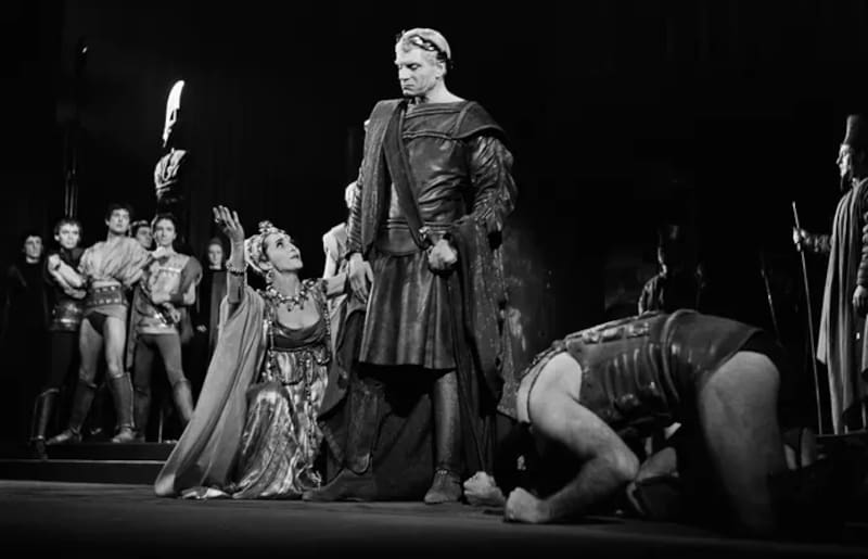 Al año siguiente comenzó su largo vínculo con Shakespeare: dirigió Trabajos de amor perdido y una juvenil versión de Romeo y Julieta; cosechó elogios con Laurence Olivier en Titus Andrónico y Paul Scofield en Hamlet, y estremeció con una violenta versión de La tempestad.