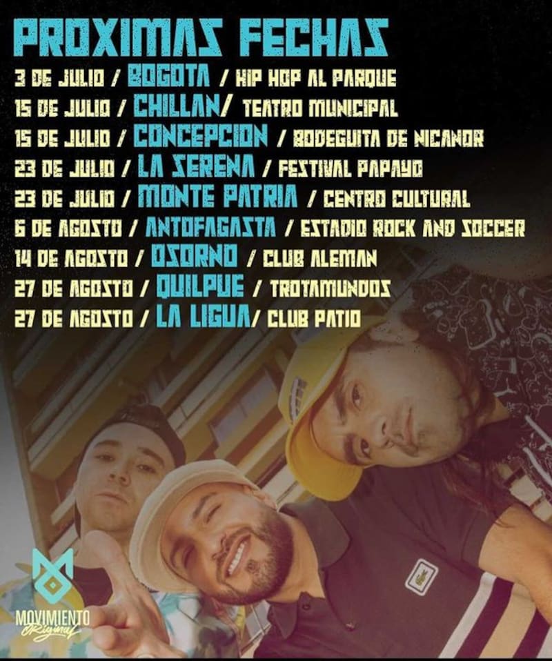 La banda, que viene de cerrar los 25 años del Festival Hip Hop al Parque en Bogotá, agendó ocho presentaciones en el país, en que visitarán ciudades como Antofagasta, Concepción, La Serena, entre otras.