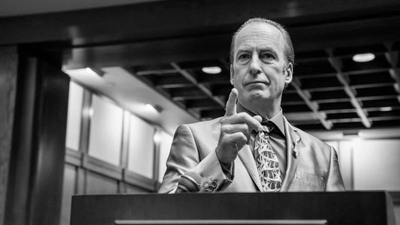 Gene finalmente es apresado por la policía, que lo encuentra dentro de un basurero (una metáfora extrañamente poco sutil para la serie) y el alias más terrible del protagonista -el hombre que casi desguella a una anciana con un cable telefónico-, ese muerto en vida y con vida en blanco y negro debe enfrentar a la justicia. Inicialmente vemos cómo Gene queda atrás y vuelve el fanfarrón Saul Goodman. Pero cuando tiene el acuerdo listo para irse a la cárcel por pocos años, se entera de que Kim Wexler ha confesado lo que hicieron con Howard. Y eso desmorona todo su plan, enterarse que su exmujer sigue cargando con esa culpa lo destruye.
