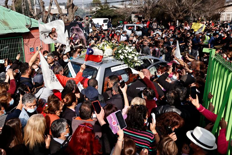 Su adiós no podía ser de otra forma. Su velorio en el Gimnasio Municipal de Conchalí -iniciado ayer cerca de las 14.00 horas- ha congregado a miles de personas. La carroza fúnebre salió hace un par de horas del lugar y pasó por la tradicional Pérgola de las Flores, donde fue masivamente homenajeado.