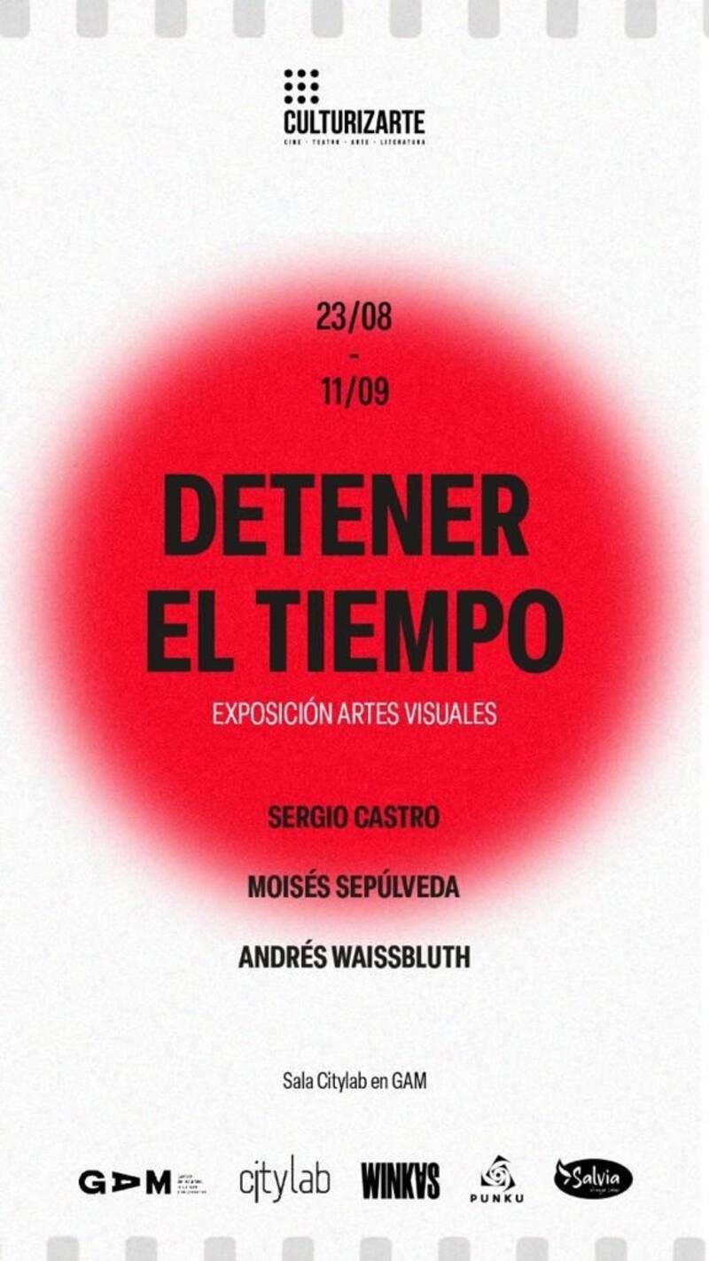 Tres importantes cineastas chilenos se reúnen en una exposición colectiva en el Centro Gabriela Mistral, GAM. Bautizada como Detener el tiempo, la muestra agrupa fotografías y pinturas de Sergio Castro, Moisés Sepúlveda y Andrés Waissbluth.