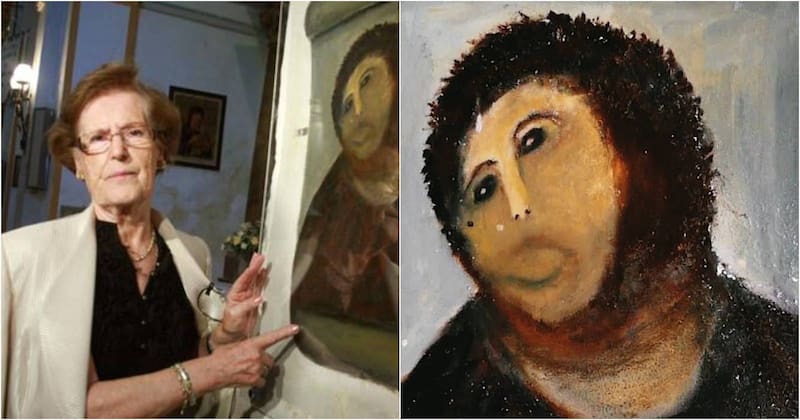 Le daba pena ver cómo el salitre de las paredes se iba comiendo el fresco. Y como una habitual de la parroquia Santuario de Misericordia del pueblo de Borja, Zaragoza, Cecilia Giménez, 81 años, decidió echar una mano para restaurar una de las pinturas murales de la iglesia, un Ecce Homo. La veterana consideraba que el talento y las ganas eran suficientes para tamaña empresa.