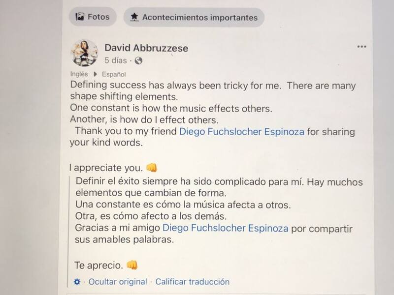 El reconocimiento por parte del percusionista no se quedó exclusivamente en ese intercambio privado. Después de la conversación que sostuvo con Diego, Abbruzzese compartió un texto público en su muro de Facebook dedicado al chileno.