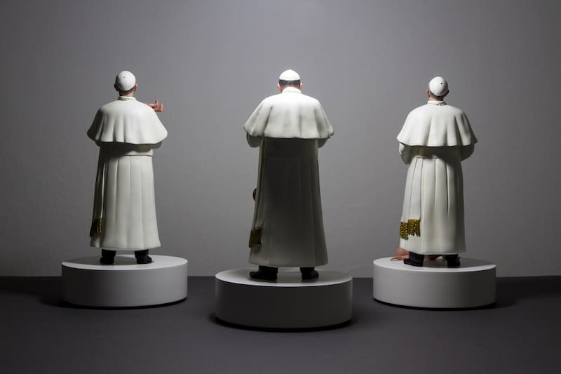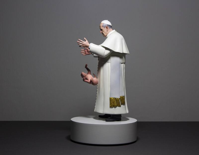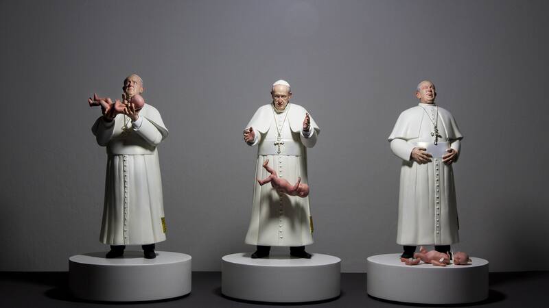 Un tríptico de esculturas llamada Chao Tradición se tomó los comentarios de los usuarios de las redes sociales. También los titulares de prensa de muchos medios en Latinoamérica y Europa. Es una secuencia que muestra al Papa Francisco con un bebé en brazos, luego dejándola caer, y finalmente riéndose ante el cadáver despedazado de la criatura.