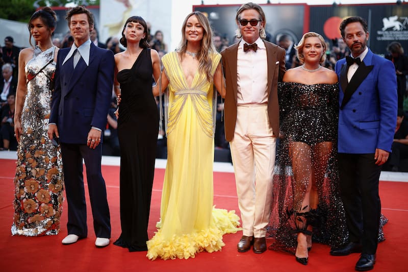 Durante esa parte de la cita mantiene distancia de Wilde y Styles, lo que se repite en la distribución de asientos en la sala. Al final de la proyección, cuando reciben cerca de cuatro minutos de aplausos, la intérprete no se acerca a la directora. Las críticas de los especialistas son entre mixtas y negativas, resaltando en particular el trabajo de Pugh.