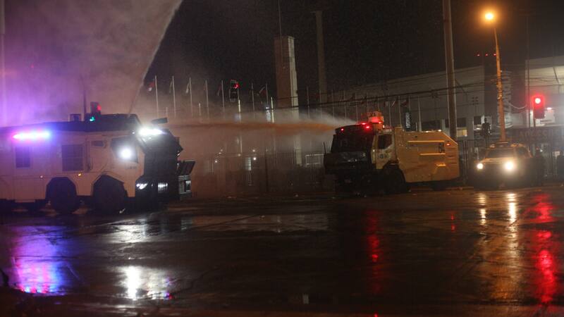 Por ello, los efectivos policiales debieron intervenir con carros lanzaagua y caballos, afectando incluso a la gente que, con entrada en mano, hacía la fila para ingresar al espectáculo. La situación fue caótica y los jóvenes que pujaban por entrar se enfrentaron a carabineros arrojando piedras y objetos contundentes.